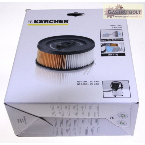 hengeres lapos hajtásos szűrő, részben nedves / száraz porszívókhoz alkalmas WD4, WD5, WD4000-5999 alternatív alkatrész, mint a Kärcher 6.414-960.0. Lehetővé teszi mind a nedves, mind a száraz porszívót a szűrő cseréje nélkül hossza: 179 mm szélesség: 17