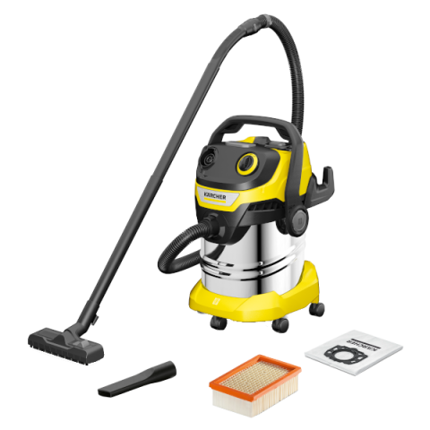 Nagy teljesítmény minden területen: A WD 5 S V-25/5/22 - amely 25 literes rozsdamentes acéltartállyal, 5 méteres vezetékkel és 2,2 méteres szívótömlővel rendelkezik - kiváló szívóerővel bír, miközben magas szintű energiahatékonyságot biztosít.