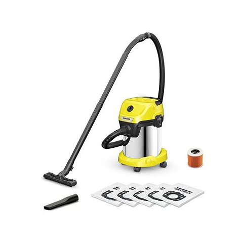 Ipari porszívó - vezetékes, alkalmas minden padlótípushoz, tisztítás módja nedves tisztítás és száraz tisztítás, papírszűrő, 1000 W teljesítmény, zajszint 73 dB, műanyag gyűjtőtartály 17 l űrtartalommal, kábel hossza 4 m, fúvás, hosszabbító cső, mérete 50,5 × 38 × 38,3 cm (Ma×Sz×Mé), tömege 5,91 kg, szűrő a csomag része, sárga kivitel Kärcher WD 3 S V-17/4/20 ipari porszívó A Kärcher WD 3 S V-17/4/20 ipari porszívóval megbízhatóan felszívhatsz mi