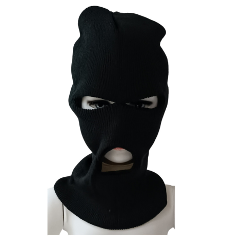 Fekete kötött sí maszk, farsangi jelmez kiegészítő.