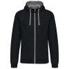 1 kép KARIBAN Férfi cipzáras pulóver kontrasztos bélésű kapucnival, Kariban KA466, Black/Fine Grey-2XL