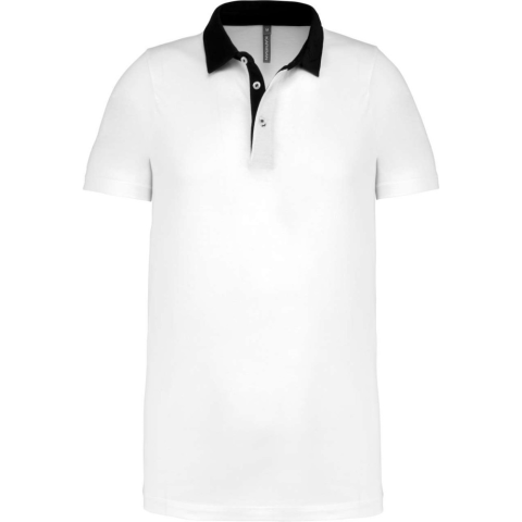 1 kép KARIBAN Férfi galléros jersey póló, kontrasztos gallérral, Kariban KA260, White/Navy-L