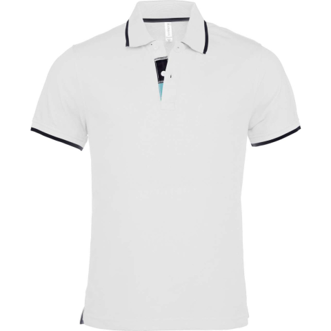 1 kép KARIBAN Férfi galléros piké póló, kontrasztcsíkos szélekkel, Kariban KA245, White/Navy-L
