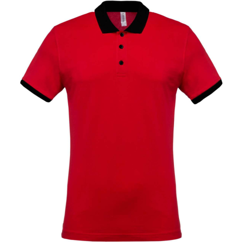 1 kép KARIBAN Férfi galléros piké póló, kontrasztos passzékkal, Kariban KA258, Red/Black-M