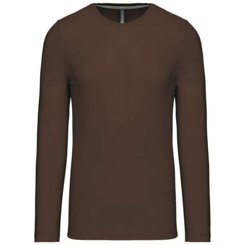 1 kép KARIBAN Férfi kereknyakú hosszú ujjú pamut póló, Kariban KA359, Chocolate-M