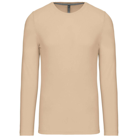 1 kép KARIBAN Férfi kereknyakú hosszú ujjú pamut póló, Kariban KA359, Light Sand-S