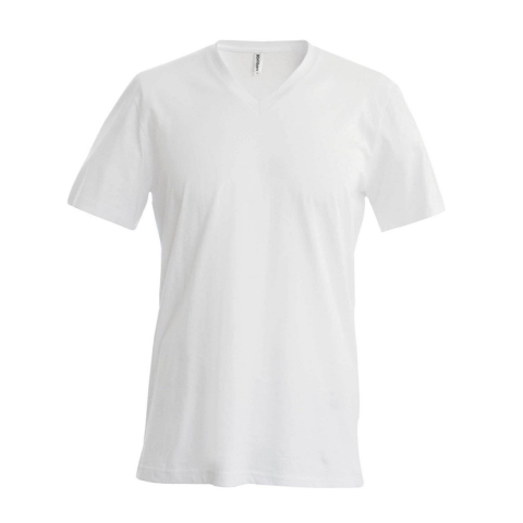 1 kép KARIBAN Férfi oldalvarrott V-nyakú rövid ujjó póló, Kariban KA357, White-4XL