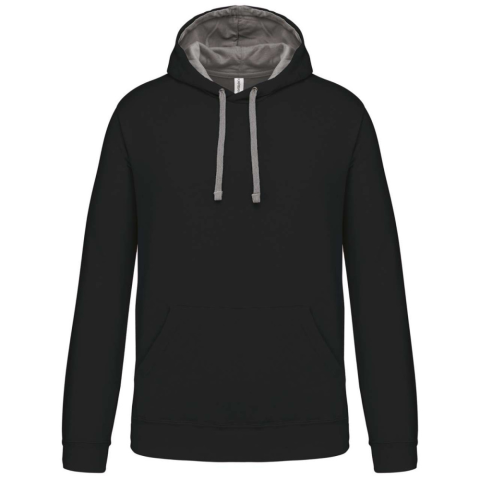 1 kép KARIBAN Férfi pulóver kontrasztos bélésű kapucnival, Kariban KA446, Black/Fine Grey-XS