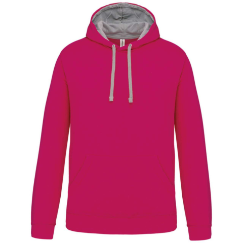 1 kép KARIBAN Férfi pulóver kontrasztos bélésű kapucnival, Kariban KA446, Fuchsia/Fine Grey-XL