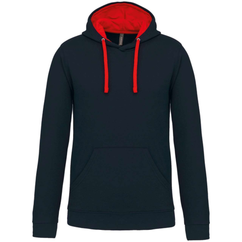 1 kép KARIBAN Férfi pulóver kontrasztos bélésű kapucnival, Kariban KA446, Navy/Red-4XL