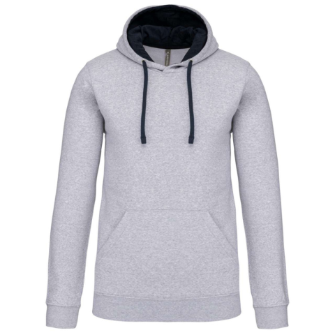 1 kép KARIBAN Férfi pulóver kontrasztos bélésű kapucnival, Kariban KA446, Oxford Grey/Navy-2XL
