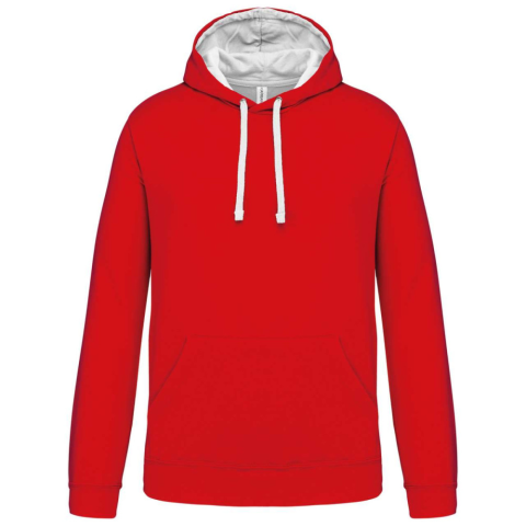 1 kép KARIBAN Férfi pulóver kontrasztos bélésű kapucnival, Kariban KA446, Red/White-M