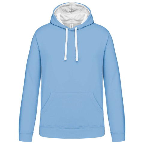 1 kép KARIBAN Férfi pulóver kontrasztos bélésű kapucnival, Kariban KA446, Sky Blue/White-XL