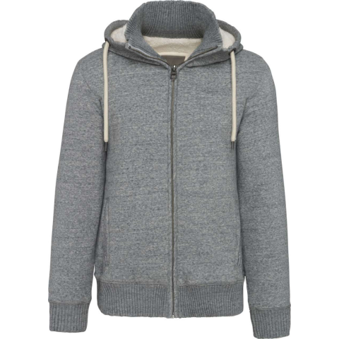 KARIBAN Férfi sherpával bélelt cipzáras kapucnis pulóver, Kariban KV2312, Slub Grey Heather-S