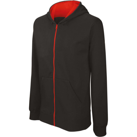 1 kép KARIBAN Gyermek cipzáras pulóver bélelt kontrasztos kapucnival, Kariban KA486, Black/Red-10/12