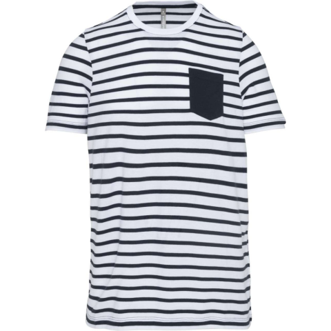 1 kép KARIBAN Gyermek matrózcsíkos pamut póló zsebbel, Kariban KA379, Striped White/Navy-4/6