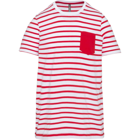 1 kép KARIBAN Gyermek matrózcsíkos pamut póló zsebbel, Kariban KA379, Striped White/Red-12/14