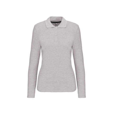 NŐI HOSSZÚ UJJÚ PIQUÉ PÓLÓING 100% fésült pamut piqué – 60°C-on mosható (Oxford Grey: 90% fésült pamut piqué/10% viszkóz – 40°C-on mosható)Síkkötéses bordásOxford Grey kontrasztos pánt a nyakon és az oldalsó sliccelésen minden színnél, kivéve az Oxford