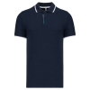 FÉRFI RÖVID UJJÚ PÓLÓING 100% pamut piquéBordázott gallér kontrasztos csíkkal és kontrasztos alsógallérral (kivéve a White/ Navy: a gallér alatt nincs kontraszt, csak egy vékony piros sáv a gombolópánt alatt)Kontrasztos pántos nyak és oldalsó sliccelés