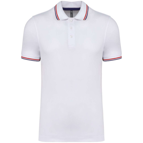 MEN'S SHORT-SLEEVED POLO SHIRT 100% pamut piqué3 gombos pántKontrasztos pántos nyak és oldalsó sliccelésA passzén kontrasztos csík a nyaknál és a mandzsettákonDupla tűzésű kivitel a szegélyenSTANDARD 100 by OEKO-TEX®N° CQ1007/7, IFTH tanúsítvánnyal SML