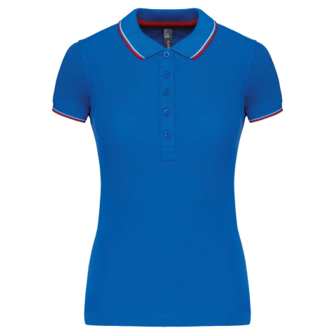 NŐI RÖVID UJJÚ PÓLÓING 100% pamut piqué5 gombos pántKontrasztos pántos nyak és oldalsó sliccelésA passzén kontrasztos csík a nyaknál és a mandzsettákonDupla tűzésű kivitel a szegélyenSTANDARD 100 by OEKO-TEX® N° CQ 1007/7, IFTH tanúsítvánnyal XSSMLXL2X