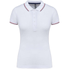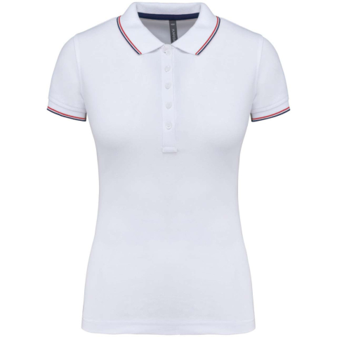 NŐI RÖVID UJJÚ PÓLÓING 100% pamut piqué5 gombos pántKontrasztos pántos nyak és oldalsó sliccelésA passzén kontrasztos csík a nyaknál és a mandzsettákonDupla tűzésű kivitel a szegélyenSTANDARD 100 by OEKO-TEX® N° CQ 1007/7, IFTH tanúsítvánnyal XSSMLXL2X