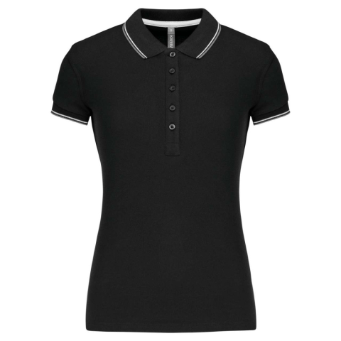 NŐI RÖVID UJJÚ PÓLÓING 100% pamut piqué5 gombos pántKontrasztos pántos nyak és oldalsó sliccelésA passzén kontrasztos csík a nyaknál és a mandzsettákonDupla tűzésű kivitel a szegélyenSTANDARD 100 by OEKO-TEX® N° CQ 1007/7, IFTH tanúsítvánnyal XSSMLXL2X