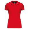 LADIES' SHORT-SLEEVED POLO SHIRT 100% pamut piqué5 gombos pántKontrasztos pántos nyak és oldalsó sliccelésA passzén kontrasztos csík a nyaknál és a mandzsettákonDupla tűzésű kivitel a szegélyenSTANDARD 100 by OEKO-TEX® N° CQ 1007/7, IFTH tanúsítvánnyal