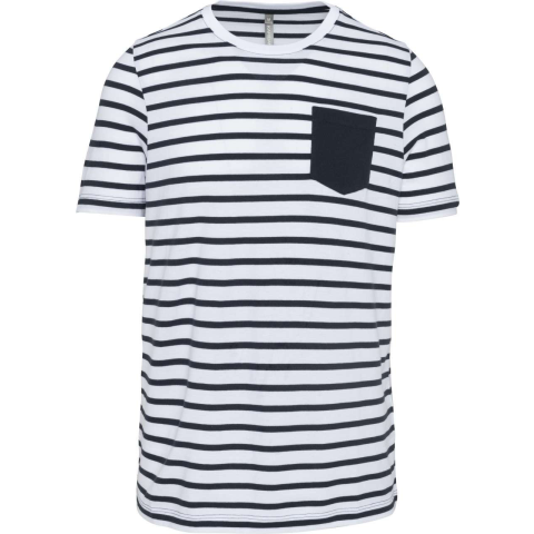 CSÍKOS RÖVID UJJÚ ZSEBES TENGERÉSZ PÓLÓ 100% pamutJersey kötött anyag fésült pamutbólPuha tapintásúBordázott környakasBal oldalon kontrasztos mellzsebKontrasztos pántos nyakDupla tűzésű kivitel a mandzsettákon és a szegélyenSTANDARD 100 by OEKO-TEX® N°