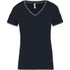 NŐI V-NYAKÚ PIQUÉ PÓLÓ 100% fésült pamut piqué (Oxford Grey: 90% pamut/10% viszkóz)Bordás kivitel kontrasztos csíkokkal a nyaknál és a mandzsettákonKontrasztos pántos nyak és oldalsó sliccelésDupla tűzésű kivitel a szegélyenSTANDARD 100 by OEKO-TEX® N°