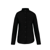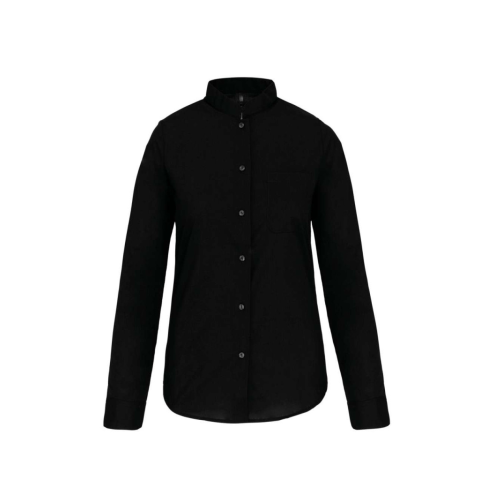 LADIES' LONG-SLEEVED MANDARIN COLLAR SHIRT 65% poliészter/35% pamut puplinKönnyen vasalható szövetÁllógallérHozzáillő gombokBal oldalon V-alakú mellzsebÁllítható lekerekített mandzsetták szakadásmentes ujjpánttal1 pótgombFormázott szegélySTANDARD 100 b
