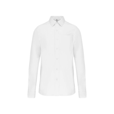 FÉRFI HOSSZÚ UJJÚ KÖNNYEN KEZELHETŐ PAMUT PUPLIN ING 100% pamut puplinKönnyen vasalható szövetMerevített cápagallérHozzáillő gombokRátett bal oldali mellzsebDupla hátsó vállrész 2 hátsó bőséghajtássalLapos varrásokÁllítható lekerekített gombos mandzset