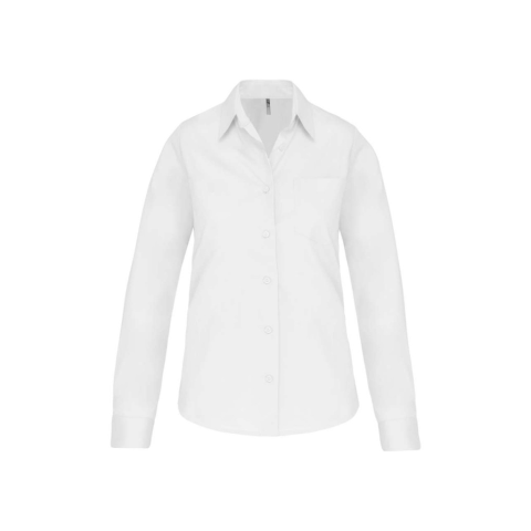 LADIES' LONG-SLEEVED COTTON POPLIN SHIRT 100% pamut puplinKönnyen vasalható szövetPuha gallérHozzáillő gombokBal oldalon V-alakú mellzsebÁllítható lekerekített szakadásmentes mandzsetták1 pótgombFormázott szegélySTANDARD 100 by OEKO-TEX®N° CQ1007/7, IF