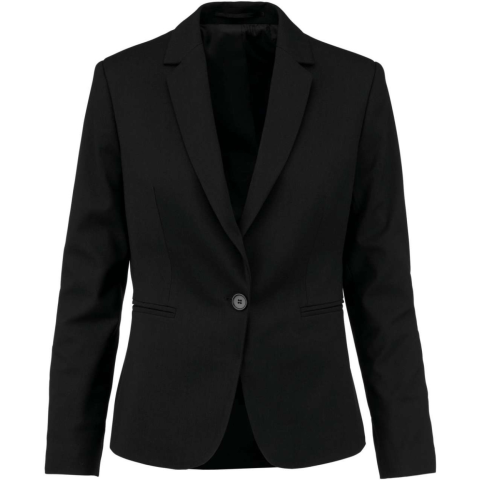 LADIES' JACKET 64% poliészter / 34% viszkóz / 2% elasztán100% poliészter taft bélésEgygombos blézer2 elülső paszpolos zseb2 gombos belső zsebMandzsetták 3 gombbal1 hátsó sliccelésSTANDARD 100 by OEKO-TEX®N° CQ1007/8, IFTH tanúsítvánnyal 343638404244464