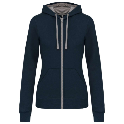 1 kép KARIBAN Női cipzáras pulóver kontrasztos bélésű kapucnival, Kariban KA467, Navy/Fine Grey-XL