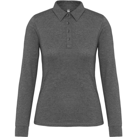 Kariban KA265 Női galléros hosszú ujjú jersey póló, 100% pamut (Grey Heather: 65% poliészter / 35% pamut – Oxford Grey: 90% pamut / 10% viszkóz)Jersey kötött anyag fésült pamutbólInggallérGombolópánt 4 fémgombbalVállrészBordázott mandzsettákDupla tűzésű k