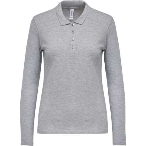 1 kép KARIBAN Női galléros hosszú ujjú piké póló, Kariban KA257, Oxford Grey-M