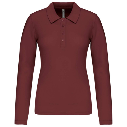KARIBAN Női galléros hosszú ujjú piké póló, Kariban KA257, Wine-L