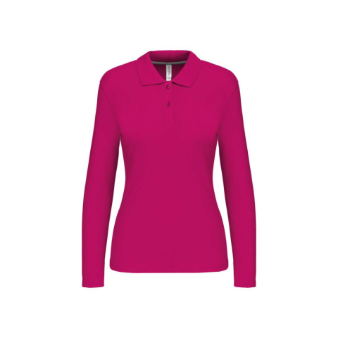 1 kép KARIBAN Női hosszú ujjú galléros piké póló, Kariban KA244, Fuchsia-S