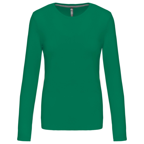 1 kép KARIBAN Női hosszú ujjú kereknyakú pamut póló, Kariban KA383, Kelly Green-M
