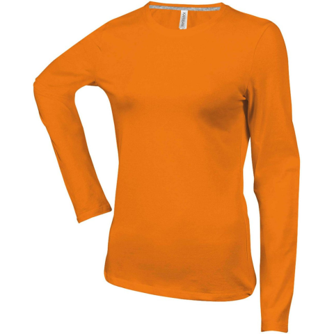 1 kép KARIBAN Női hosszú ujjú kereknyakú pamut póló, Kariban KA383, Orange-XL