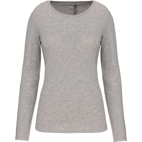 1 kép KARIBAN Női hosszú ujjú kereknyakú sztreccs póló, Kariban KA3017, Light Grey Heather-2XL