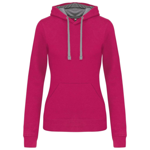 1 kép KARIBAN Női pulóver kontrasztos bélésű kapucnival, Kariban KA465, Fuchsia/Fine Grey-XL