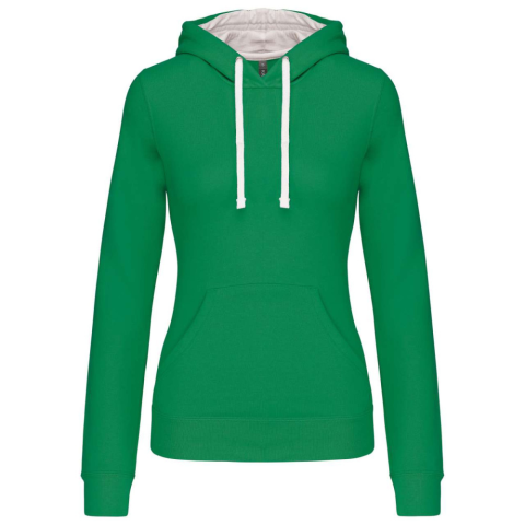 1 kép KARIBAN Női pulóver kontrasztos bélésű kapucnival, Kariban KA465, Light Kelly Green/White-XS
