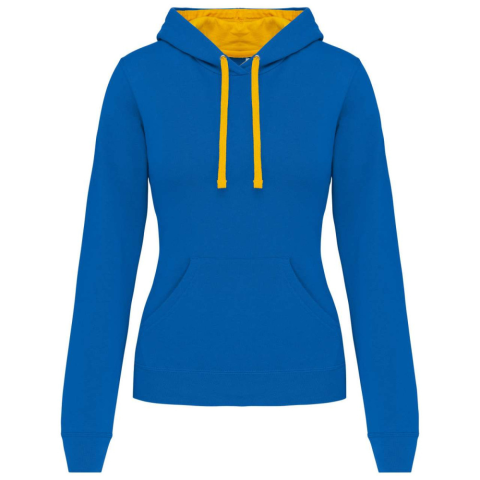 1 kép KARIBAN Női pulóver kontrasztos bélésű kapucnival, Kariban KA465, Light Royal Blue/Yellow-2XL