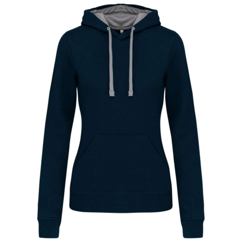 1 kép KARIBAN Női pulóver kontrasztos bélésű kapucnival, Kariban KA465, Navy/Fine Grey-M