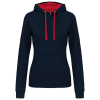 1 kép KARIBAN Női pulóver kontrasztos bélésű kapucnival, Kariban KA465, Navy/Red-M