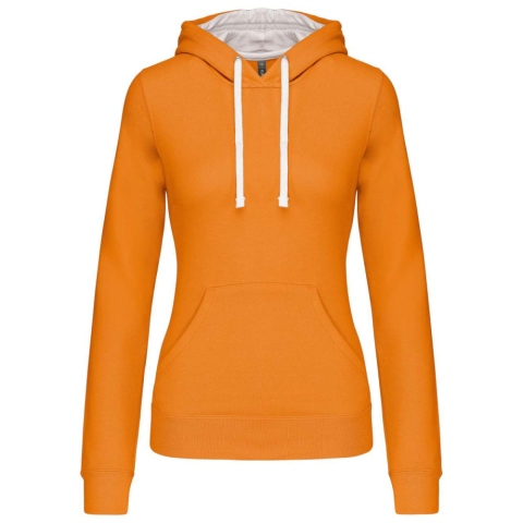 1 kép KARIBAN Női pulóver kontrasztos bélésű kapucnival, Kariban KA465, Orange/White-2XL
