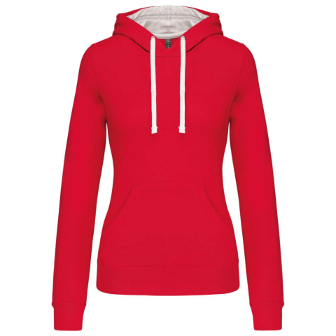 1 kép KARIBAN Női pulóver kontrasztos bélésű kapucnival, Kariban KA465, Red/White-S