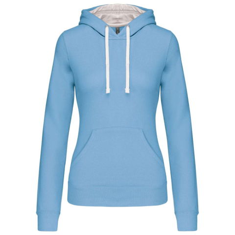 1 kép KARIBAN Női pulóver kontrasztos bélésű kapucnival, Kariban KA465, Sky Blue/White-XL